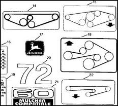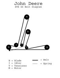 Here are a few examples of John Deere belt routing diagrams. The one on the left is for a front mount mower deck.