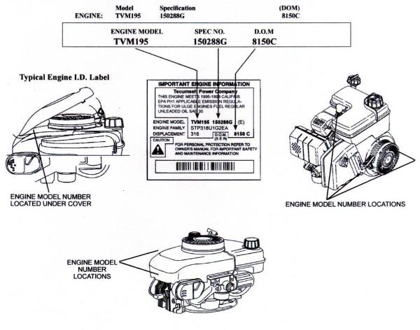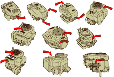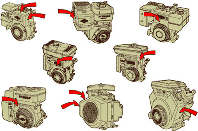 | Below are some examples of the location of model numbers on Briggs & Stratton engines ~ ~ ~ ~ ~ ~ ~ ~ ~ ~ ~ Voici quelques endroits ou vous pouvez trouvez les numéros de modèle Briggs & Stratton |